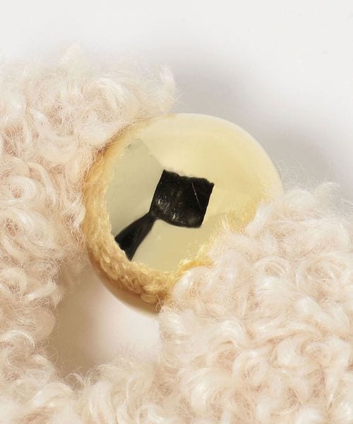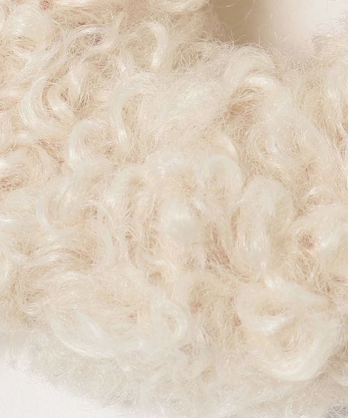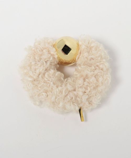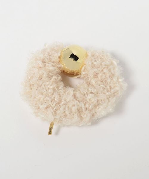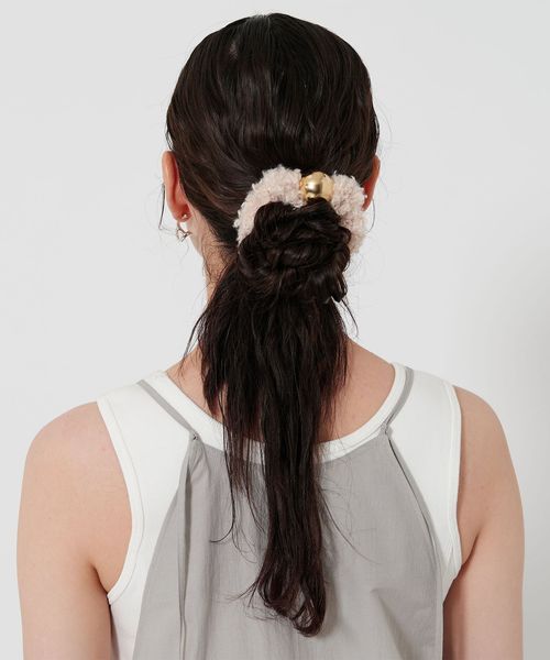 カールのかかったフェイクファーを使用し、メタルボールを1つアクセントに設置したシュシュ。