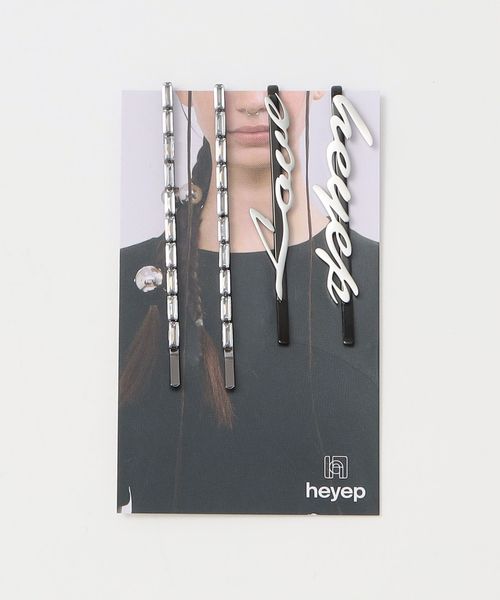 <heyep>ロゴ ラインストーン ヘアピン/4P