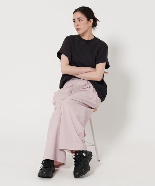 ボリュームがありながら、つま先に向けてすっきりとしたシルエットが足元でバランスよく映えます。