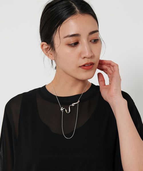 ミニマルなコーディネートに合わせたい主役になるネックレスです。