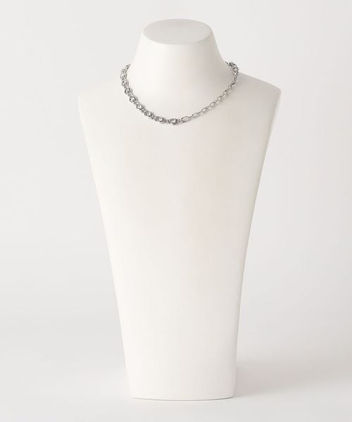 工業的なダークトーンのシルバーカラーで作製したシリーズのネックレス。