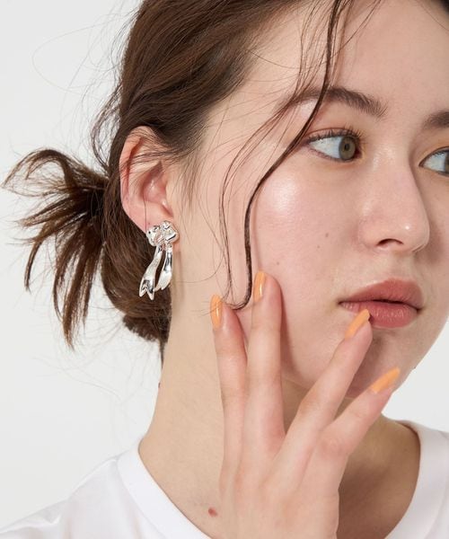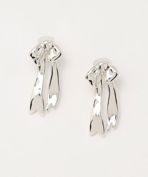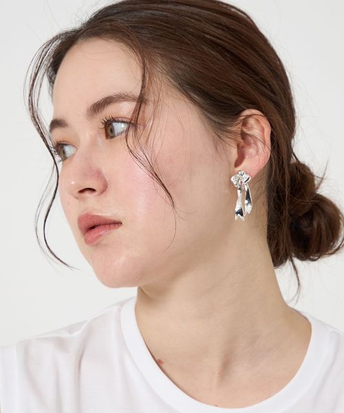 <Soierie>リアリティーのあるリボンの質感で、さりげない可愛らしさを演出するイヤリング
