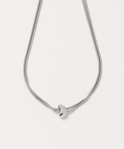 華奢で丸みのあるスネークチェーンに結び目のようなビーンモチーフをあしらったネックレス。