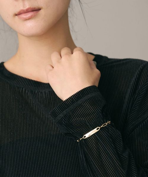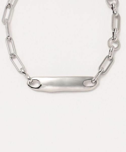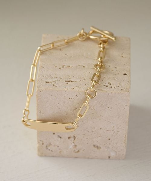 長方形のリングが連なったチェーンに、ニュアンスのあるバーを組み合わせたブレスレット。