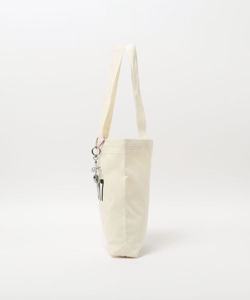 オフホワイトにブラックのロゴデザインでミニマルなルックスは、カジュアルからフェミニンな装いまで幅広くマッチ。