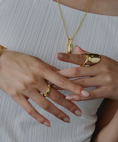 目を引くルックスながら、他のリングとのコンビづけやブレスレットともバランスが取りやすいアイテム。