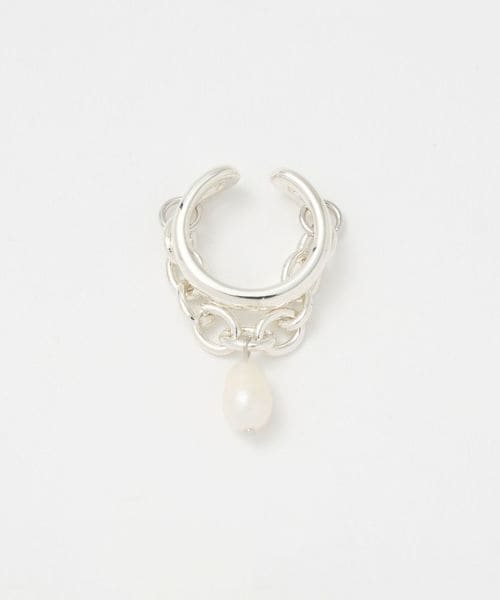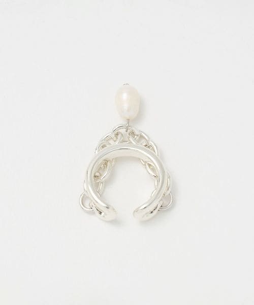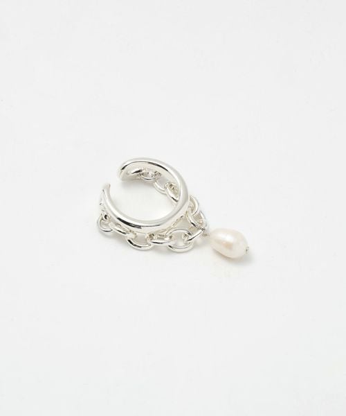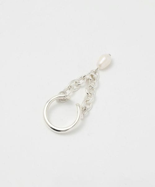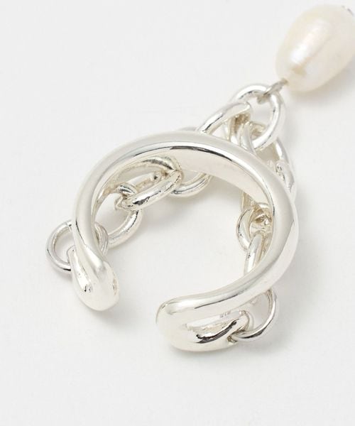 しっかりと太さのあるリングとチェーンが組み合わさり、パールが揺れるように付いたデザイン。