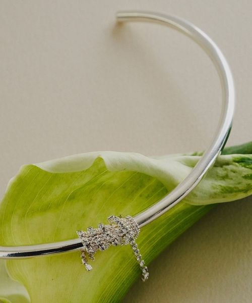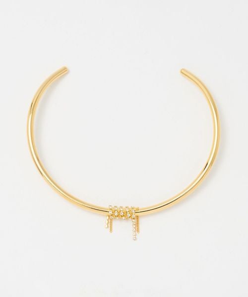 シンプルなメタルチョーカーの真ん中にビジューモチーフがあり、さりげない存在感を発揮。