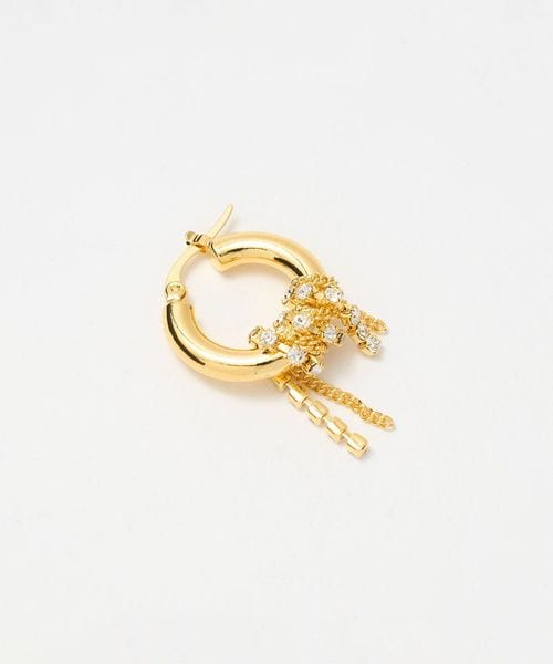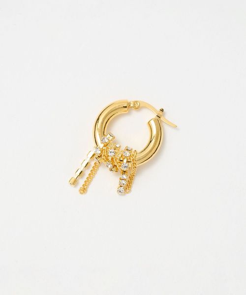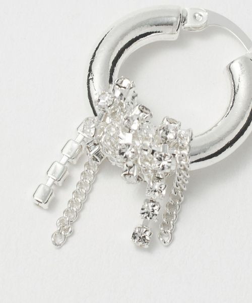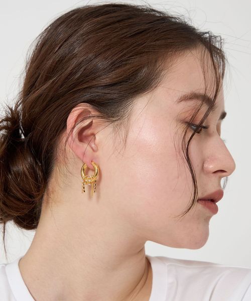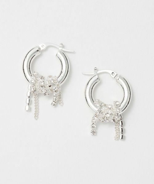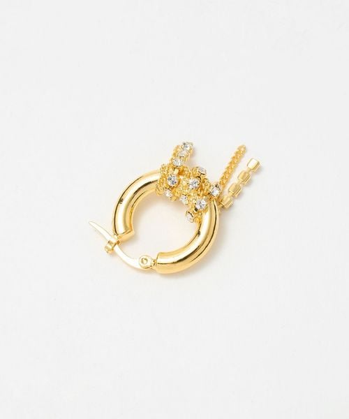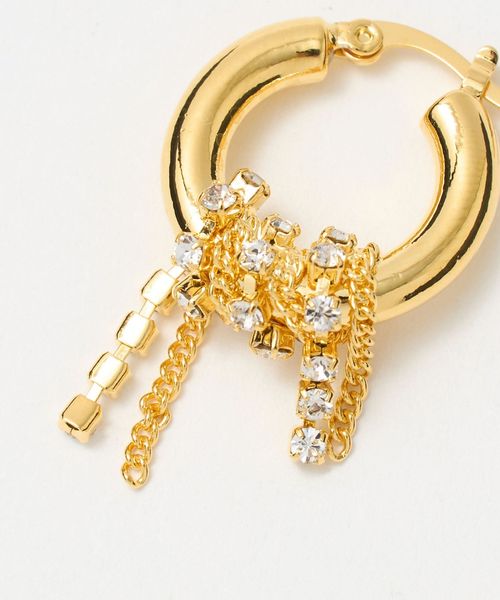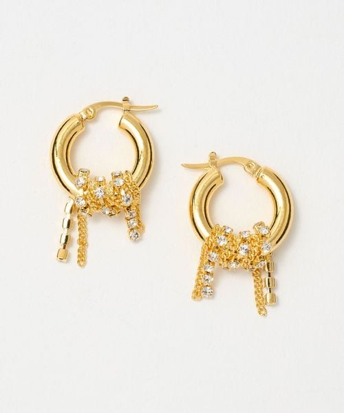ビジューチェーンと華奢なチェーンが巻きついたようなデザインのピアス。