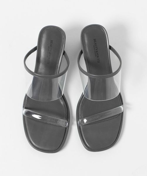 ヌーディーな透け感が夏らしい印象のクリアサンダル。