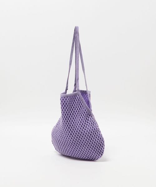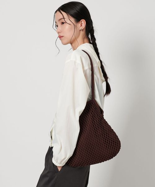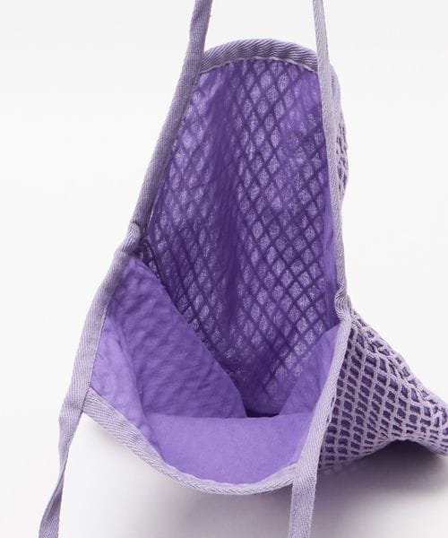 ベースのコットン生地にフィッシングネット素材を重ねたデザインのトートバッグ。