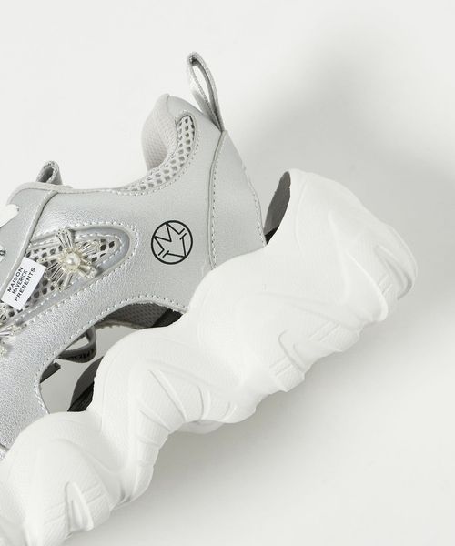 アッパーに装飾されたビーズのフラワーモチーフがフェミニンな印象のスニーカーサンダル。