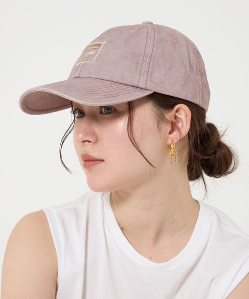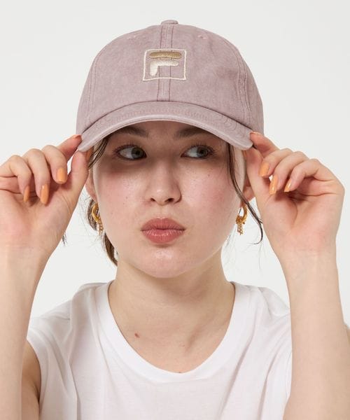 洗いをかけたようなピグメント加工が印象的な<FILA>の別注キャップ。
