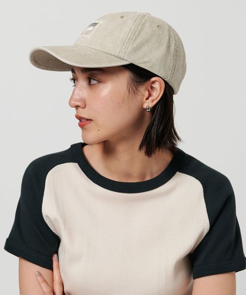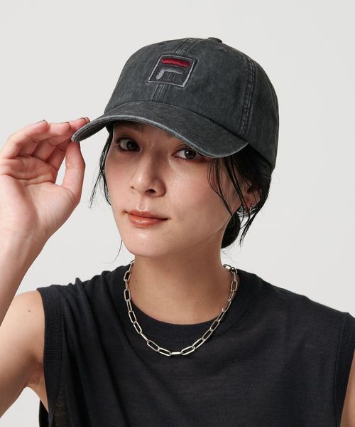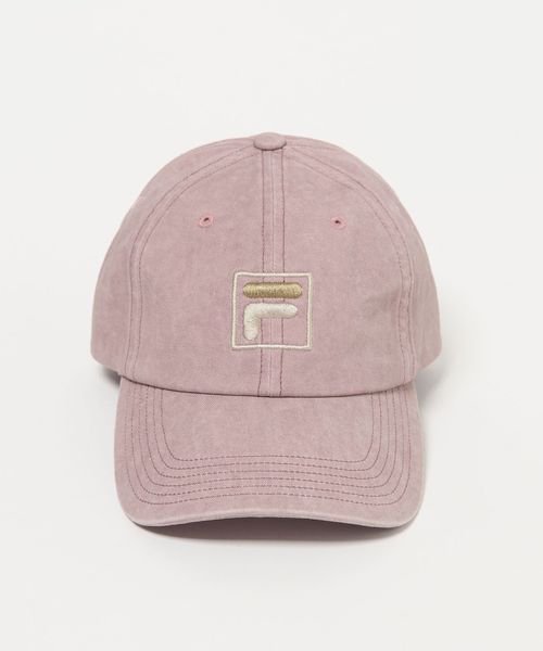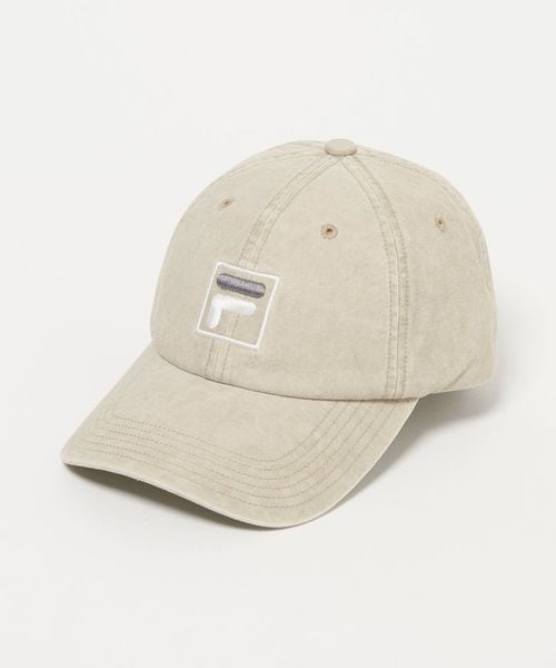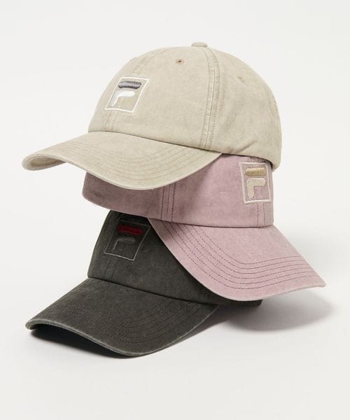 洗いをかけたようなピグメント加工が印象的な<FILA>の別注キャップ。