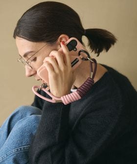 ハンドストラップ、チャーム、バッグのハンドルとしてなど、取り付けるアイテムや場所によって役割や表情を変えてくれる<ajew>のコイルストラップ。