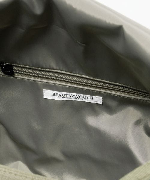 たっぷりとしたマチ付きながら、荷物の量に合わせ本体下部に配したベルトによりサイズ感の調節も可能です。