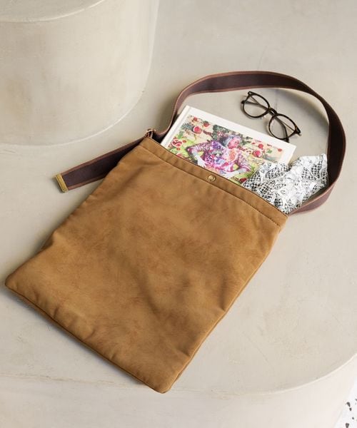 マチのないすっきりとしたフォルムで、肩掛けや斜め掛けした際にも身体に沿うおさまりの良い形もポイント。