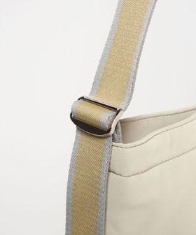 ラインテープが個性を発揮する、遊び心と利便性を兼ね備えたショルダーバッグ。
