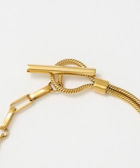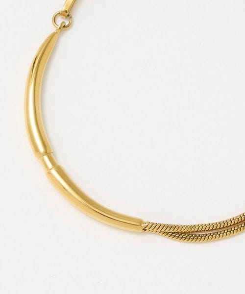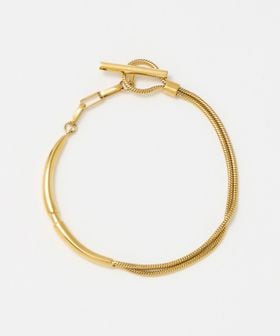 フロントに筒状のモチーフをあしらったブレスレット。