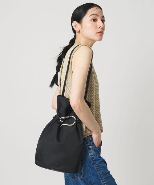 オリジナルの「Poire」金具を使用した巾着型ショルダーバッグ。