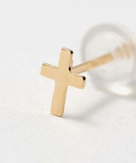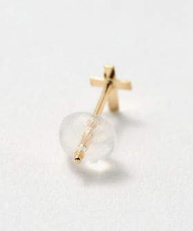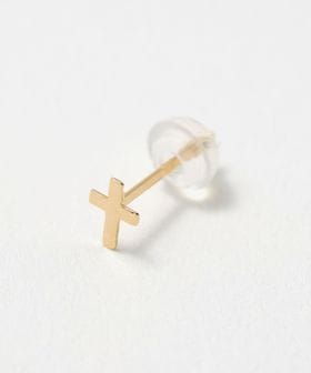 K18ゴールドで作製したミニマルデザインのクロスモチーフピアス。
