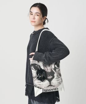両面に施された大胆な猫プリントのデザインが、コーディネートにアクセントを添えてくれます。