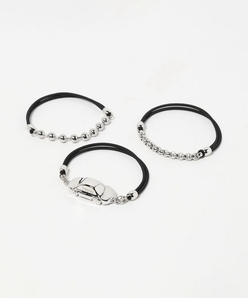 車モチーフのパーツやボールチェーンを組み合わせたヘアゴムの3本セット。