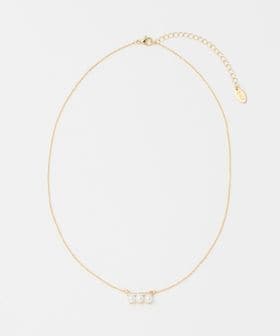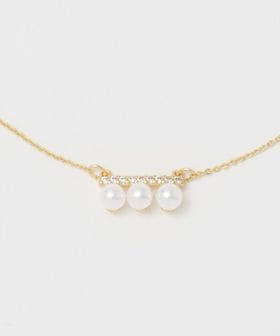 横並びに配した3つのパールモチーフにストーンを組み合わせたネックレス。