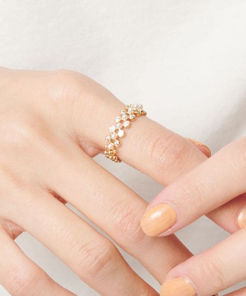 繊細なデザインが目を惹くビジューリング