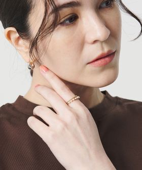 さりげない存在感を放つアイテムは、他のリングとの重ね付けも好バランス。
