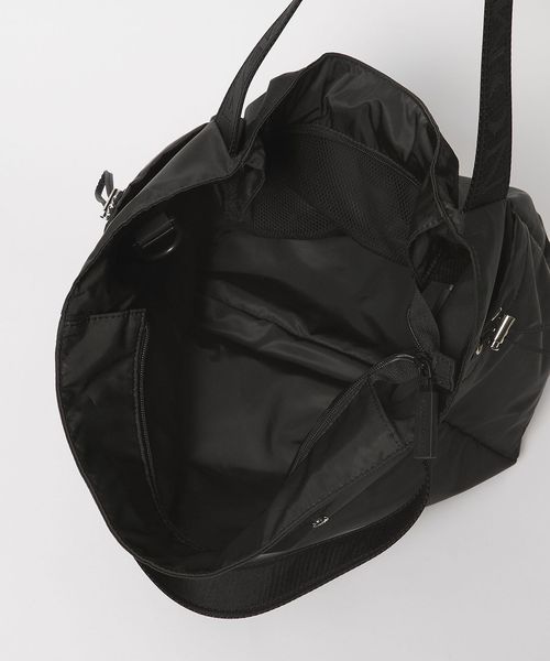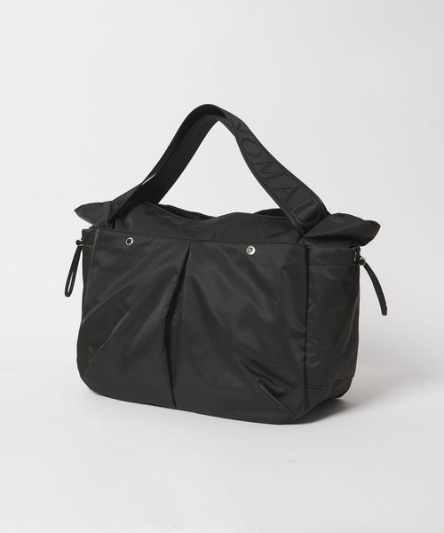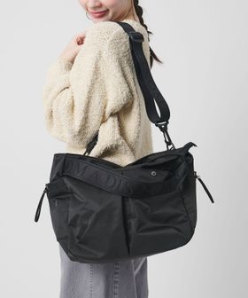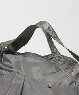 ロゴが織られたジャガードテープが印象的な持ち手のデザインと、取り外し可能なショルダーストラップがポイント。