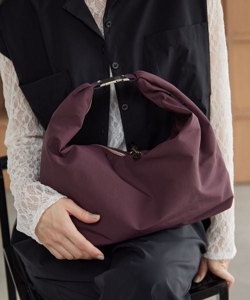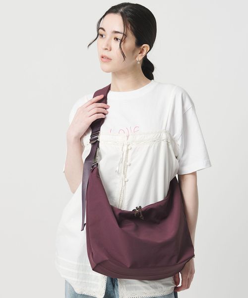 ハーフムーンのボディに、ポイントを効かせる太めのハンドルがポイントのショルダーバッグ。