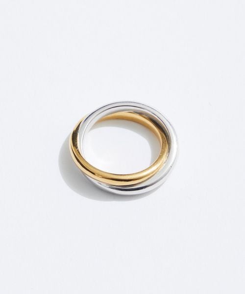 シルバーカラーとゴールドカラーのリングをクロスさせているようなデザイン。
