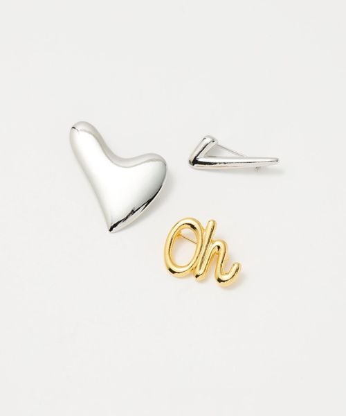 シルバーとゴールドのモチーフのピンブローチ3個セット。