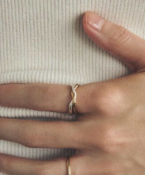 そのまま付けるのはもちろん、回転させて後ろのねじりを見せたり、2本の指に付けても楽しめます。