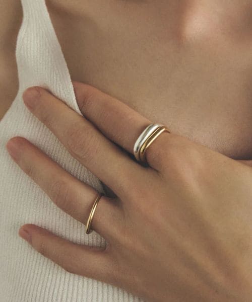ニュアンスのあるスクエアシルエットが美しい<TEN.>のダブルリング