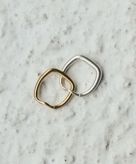 太さの違うスクエアフォルムのリングを一つに繋げたデザイン。