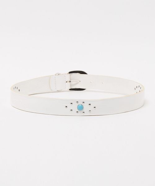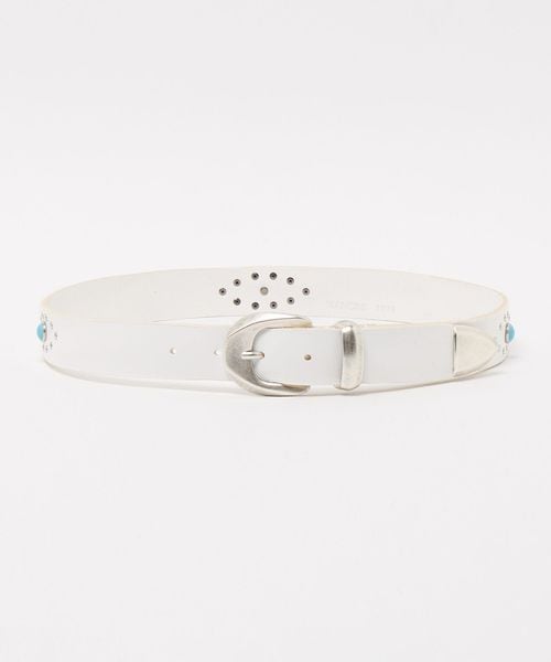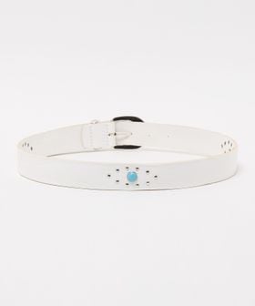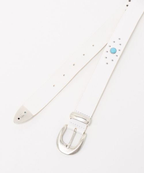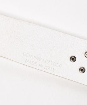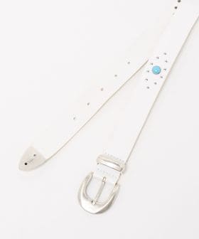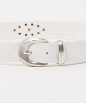 縫い目のないすっきりとしたレザーにスタッズディテールが目を惹くベルト。