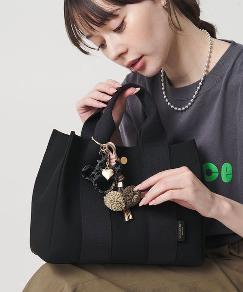 カラビナ付きで、トートからショルダーバッグなどさまざまなバッグに取り付けられるのもうれしいポイント。