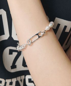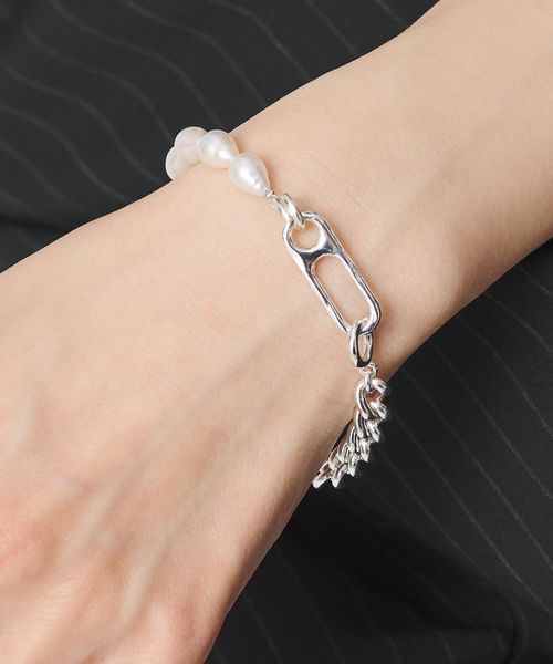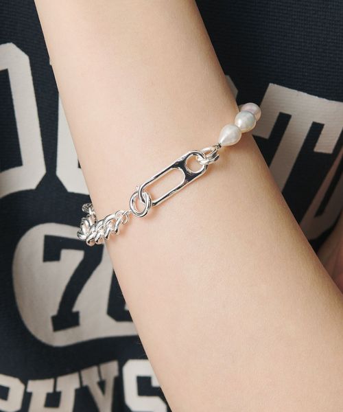 モダンなクリップモチーフとパールのミックスが新鮮な<Soierie>のブレスレット