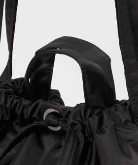 収納力の高い幅広のマチに、荷物を出し入れしやすいドローストリング仕様とマグネットクロージャーを組み合わせた開口部で、実用性に富んだ一品。
