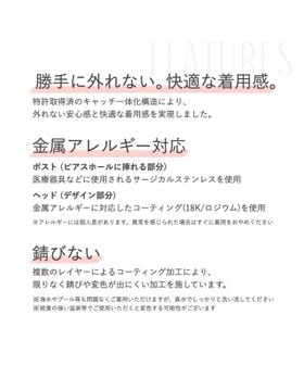 キャッチを必要とせず、フリップしたポスト部分をスライドすることで自由に締め付け具合を調整することができる、今までにない画期的な構造のピアス。