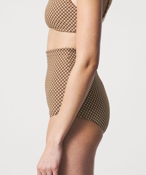 同シリーズのビキニトップやワンショルダートップとのコンビはもちろん、シンプルな無地デザインとも好相性。