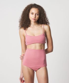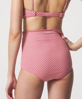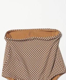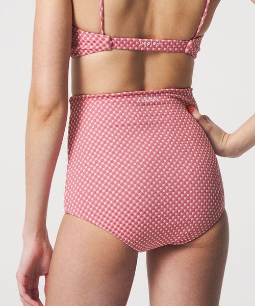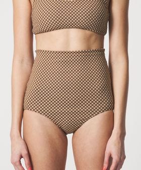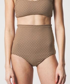 ややボーイレッグなカッティングに、生地とマッチしたレトロムード漂うデザインが完成しました。
