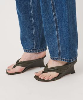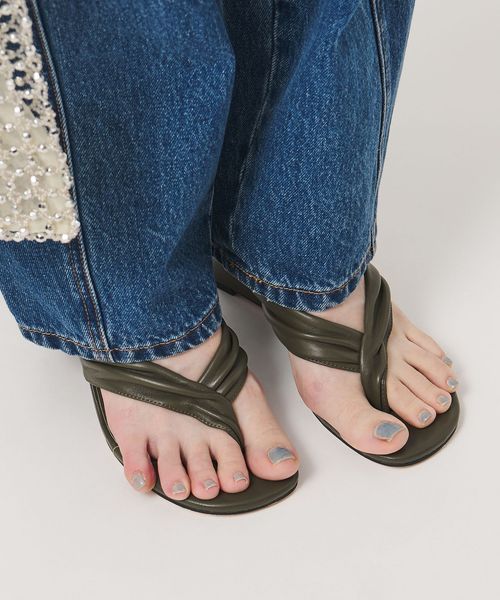 柔らかなレザーを使用し、トング部分には繊細なギャザーを施したサンダル。
