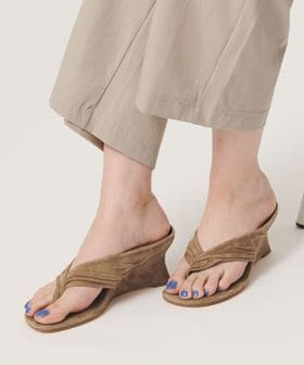 柔らかなレザーを使用し、トング部分には繊細なギャザーを施したサンダル。