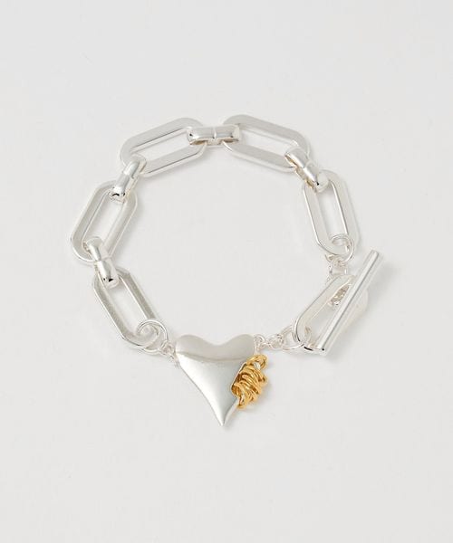 <LAPUIS>太めのチェーンとハートモチーフの組み合わせが新鮮なブレスレット