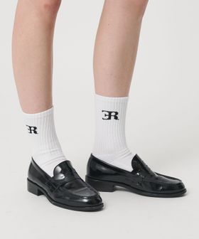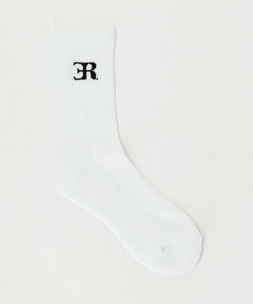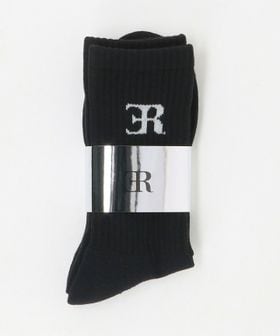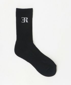 柔らかい風合いのリブ素材に、ブランドロゴを施した<ER>の定番ソックス。