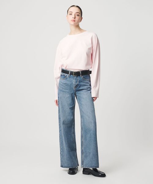 デニムジャケットとのセットアップスタイルはもちろん、コンパクトなシャツやTシャツを合わせたシンプルなコーデも様になります。