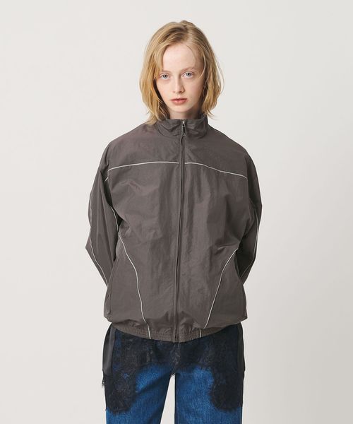 メッシュ裏地やコードテープ、袖口や裾のゴムなどスポーツテイストをディテールで表現。